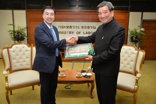พลเอก ศิริชัย ดิษฐกุล รัฐมนตรีว่าการกระทรวงแรงงาน ให้การต้อนรับ Dr.LYU KEE ILL ประธานใหญ่คณะกรรมการ Far East University สาธารณรัฐเกาหลี และคณะ ในโอกาสเข้าเยี่ยมคารวะ ณ ห้องรับรองรัฐมนตรีว่าการกระทรวงแรงงาน ชั้น 6 อาคารกระทรวงแรงงาน โดยมี หม่อมหลวงปุณฑริก สมิติ ปลัดกระทรวงแรงงาน และผู้บริหารระดับสูงของกระทรวงแรงงาน เข้าร่วมการสนทนาด้วย