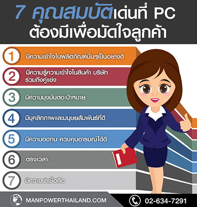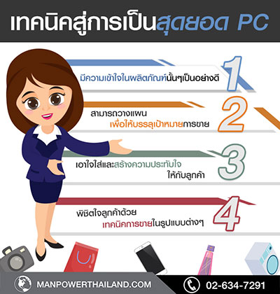 นอกจากนี้แมนพาวเวอร์กรุ๊ป มีอีกกลุ่มอาชีพที่ตลาดมีความต้องการและมีการเตรียมพร้อมรับมือกับสถานการณ์การเปลี่ยนแปลงก็คือ พนักงานขาย หรือ PC ขอคำเต็มที่ถูกต้องด้วยนะคะ เพื่อให้กำกับในวงเล็บ เป็นอีกหนึ่งกลุ่มอาชีพที่น่าจับตา เพราะเป็นส่วนสำคัญและเป็นแรงขับเคลื่อนที่สำคัญของการขายสินค้า หากจะพูดถึงอาชีพพนักงานอาจจะดูไม่น่าสนใจแต่เป็นอาชีพที่สร้างรายได้ให้กับพนักงานเฉลี่ยต่อเดือนรวมเงินเดือนและค่าคอมมิชชั่นเกือบ ๆ 20,000 และถ้าพนักงานคนไหนขยันมากๆ ก็มีรายได้ถึง 3-4 หมื่นต่อเดือนเลยทีเดียว และในการทำอาชีพนี้ทักษะและความรู้ความเข้าใจในสินค้าก็เป็นสิ่งสำคัญที่จะทำให้มียอดขายเพิ่มขึ้น นอกจากนี้ความสามารถด้านภาษาเป็นอีกหนึ่งทักษะที่จะทำให้พนักงานสามารถขายสินค้าได้กับกลุ่มต่างชาติได้อีกด้วย ซึ่งคุณสมบัติเด่นดังกล่าวจึงมีความจำเป็นกับพนักงาน และยังเพิ่มโอกาสให้พนักงานขายอีกด้วย