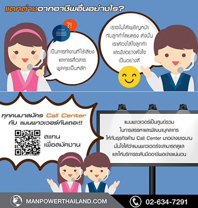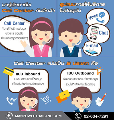 อย่างไรก็ตามอาชีพพนักงานให้ข้อมูลหรือ Call Center นับเป็นด่านแรกๆ ที่ลูกค้าจะโทรเข้ามาสอบถามข้อมูลของบริษัท สำหรับการให้บริการของแมนพาวเวอร์กรุ๊ป กับพนักงานด้านนี้จะมีการอบรมด้านการให้ข้อมูล และการแก้ไขสถานการณ์ในเบื้องต้นจนถึงระดับสูง โดยจะมีการหยิบเคสต่างๆ เพื่อให้เจ้าหน้าที่ให้ข้อมูลหรือ Call Center ได้เตรียมการรับมือหากมีสถานการณ์ลักษณะนี้เกิดขึ้น และหัวใจหลักของงานคือ การสื่อสาร ดังนั้นการที่พนักงานมีคุณสมบัติและทักษะในการแก้ไขปัญหาเฉพาะหน้าได้จึงมีความสำคัญ