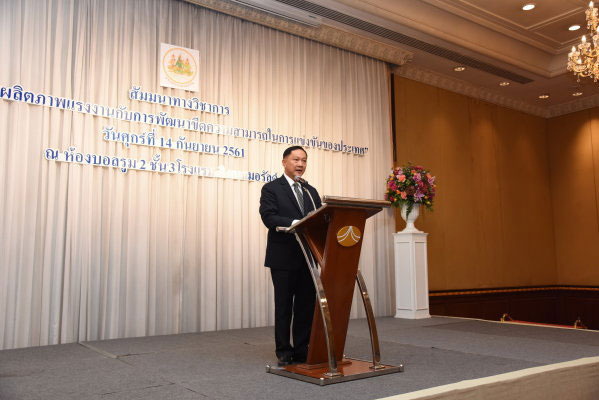 พล.ต.อ.อดุลย์ แสงสิงแก้ว รัฐมนตรีว่าการกระทรวงแรงงาน เป็นประธานในพิธีเปิดการสัมมนาทางวิชาการ เรื่อง ทิศทางการเพิ่มผลิตภาพแรงงานกับการพัฒนาขีดความสามารถในการแข่งขันของประเทศ และร่วมปาฐกถาพิเศษ ในหัวข้อ “การเพิ่มผลิตภาพแรงงานสู่ประเทศไทย 4.0” ณ ห้อง Ballroom 2 ชั้น 3 โรงแรมดิเอมเมอรัลด์ ถนนรัชดาภิเษก กรุงเทพฯ โดยกล่าวว่า จากสถานการณ์ทางโครงสร้างประชากรและตลาดแรงงานของไทย อาทิ การเข้าสู่สังคมผู้สูงอายุ อัตราการเจริญพันธุ์ที่ลดลงในทุกภูมิภาคของประเทศไทย ทำให้สถานการณ์ของกำลังแรงงานในอนาคตประสบกับการลดลงของวัยทำงานและวัยเด็ก และจะมีการพึ่งพิงที่เกิดจากผู้สูงอายุสูงขึ้น ประกอบกับโครงสร้างของจำนวนแรงงานภาคอุตสาหกรรม ภาคการเกษตร และภาคบริการ ไม่เป็นไปในทิศทางเดียวกัน โดยแรงงานภาคการเกษตรซึ่งมีอยู่ถึงประมาณร้อยละ 40 แต่มีผลิตภาพน้อยที่สุด เมื่อเทียบกับภาคอุตสาหกรรมที่มีผลิตภาพสูง จำนวนผู้มีงานทำน้อย รวมถึงปัญหาเชิงโครงสร้างตลาดแรงงาน เช่น การทำงานไม่ตรงกับสาขาที่สำเร็จศึกษา การทำงานต่ำกว่าระดับการศึกษา และคุณภาพแรงงาน ซึ่งประเด็นเหล่านี้ส่งผลต่อผลิตภาพแรงงานทั้งสิ้น