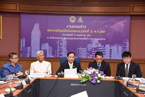 รมว.แรงงาน แถลงย้ำ พ.ร.บ.กองทุนเงินทดแทน ฉบับที่ 2 พ.ศ.2561 ลูกจ้างส่วนราชการ 1 ล้านคนรับอานิสงส์ได้รับความคุ้มครอง เพิ่มค่าทดแทนเป็นร้อยละ 70 จากเดิมร้อยละ 60 ของค่าจ้างรายเดือน หยุดงาน 1 วันได้รับค่าทดแทน ทุพพลภาพได้รับค่าทดแทนไม่น้อยกว่า 15 ปี เสียชีวิตได้รับค่าทำศพ 40,000 บาทเท่ากองทุนประกันสังคม และทายาทได้รับค่าทดแทนนาน 10 ปี พร้อมอำนวยความสะดวกนายจ้าง ลดเงินเพิ่มเหลือร้อยละ 2 และลดการจ่ายเงินเพิ่ม กรณีภัยพิบัติ มีผลบังคับใช้ 9 ธันวาคมนี้