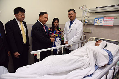 รมว.แรงงาน เยี่ยมผู้ประกันตนบาดเจ็บ เน้นย้ำหากเจ็บป่วยหรือประสบอุบัติเหตุในกรณีฉุกเฉินวิกฤต ให้มีสิทธิทุกที่ เพื่อลดความเหลื่อมล้ำในการรักษาพยาบาล และให้ผู้ป่วยได้เข้าถึงการบริการอย่างปลอดภัย