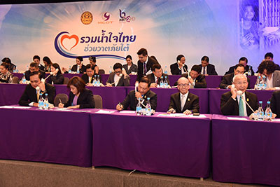 โอกาสเดียวกันนี้ พล.อ.ประยุทธ์ จันทร์โอชา นายกรัฐมนตรี พร้อมด้วยคณะรัฐมนตรี และ รมว.แรงงาน ร่วมรับโทรศัพท์เพื่อรับมอบเงินบริจาคผ่านรายการ “รวมน้ำใจ ช่วยวาตภัยใต้”ทางสถานีโทรทัศน์ MCOTHD ช่อง 30 อีกด้วย