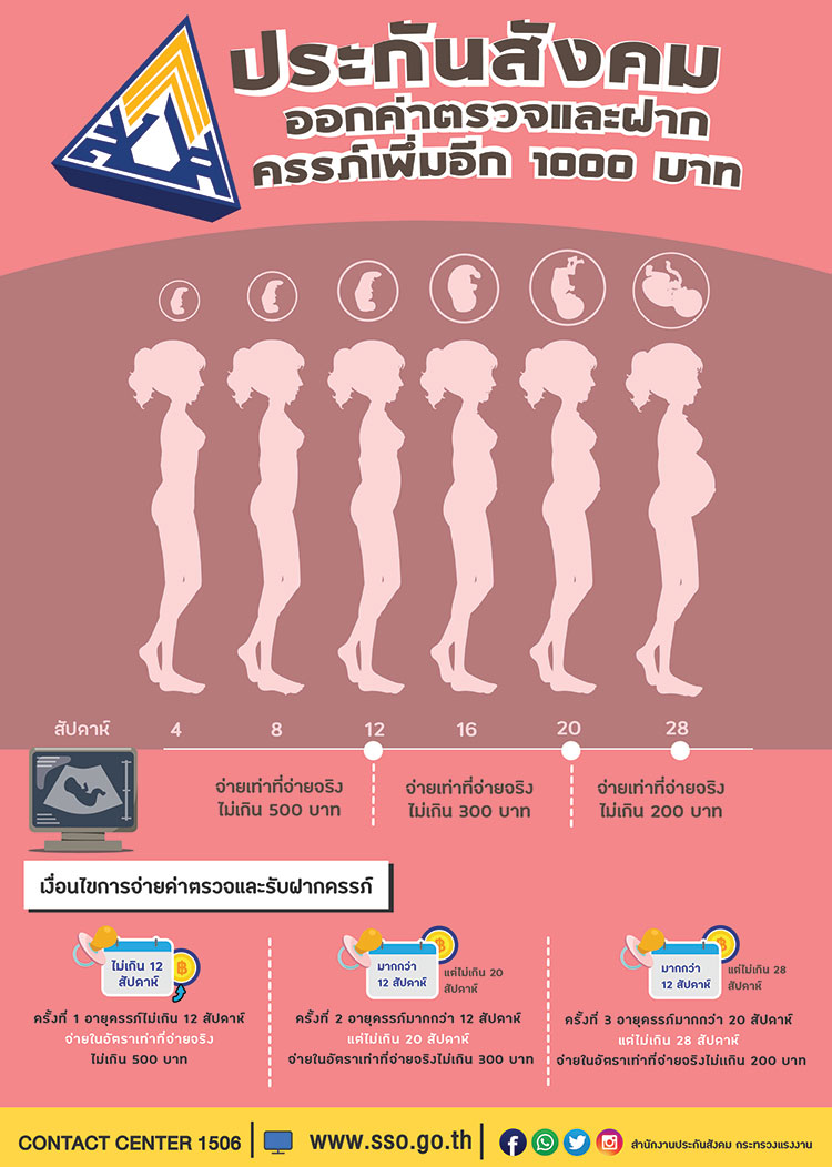 นายอนันต์ชัย อุทัยพัฒนาชีพ เลขาธิการสำนักงานประกันสังคม กระทรวงแรงงาน กล่าวถึง สิทธิประโยชน์การสนับสนุนคุณภาพชีวิตที่ดีของผู้ประกันตนหรือคู่สมรสที่ตั้งครรภ์ได้รับการตรวจและดูแลการตั้งครรภ์อย่างมีคุณภาพตามเกณฑ์มาตรฐานตั้งแต่ระยะแรกของการตั้งครรภ์ ได้รับการตรวจอย่างสม่ำเสมอ เพื่อให้การคลอดเป็นไปอย่างราบรื่น ว่า สำนักงานประกันสังคมได้มีการจ่ายประโยชน์ทดแทนกรณีคลอดบุตรให้แก่ผู้ประกันตนในอัตรา 13,000 บาท ต่อการคลอดบุตรหนึ่งครั้ง พร้อมได้ให้สิทธิประโยชน์กรณีสงเคราะห์บุตร เหมาจ่าย เดือนละ 600 บาทต่อบุตรหนึ่งคน ซึ่งมีอายุไม่เกิน 6 ปีบริบูรณ์ คราวละไม่เกิน 3 คน ทั้งนี้สำนักงานประกันสังคมยังได้มีการสนับสนุนค่าตรวจ และรับฝากครรภ์ เพิ่มอีก 1,000 บาท เพื่อเป็นการจูงใจให้ผู้ประกันตนหรือคู่สมรสมีการฝากครรภ์ตามเกณฑ์คุณภาพ ให้แก่ผู้ประกันตนที่มีการเข้ารับบริการฝากครรภ์ในสถานพยาบาลตามเกณฑ์คุณภาพที่กำหนด โดยสำนักงานประกันสังคมจะแบ่งจ่ายตามอายุครรภ์เป็นครั้งๆ ดังนี้คือ