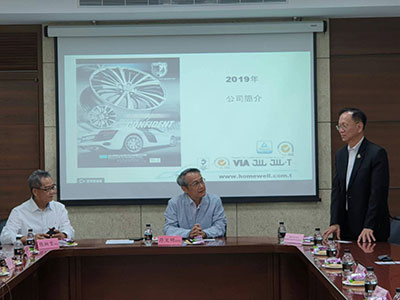 จากนั้นในช่วงบ่ายได้เข้าพบนายจ้างและเยี่ยมเยียนแรงงาน ณ บริษัท Homewell Technology Corp. ในเขตเถาหยวน ซึ่งประกอบกิจการผลิตล้อแม็กซ์รถยนต์ในแบรนด์ Arden Club โดยมีทุนจดทะเบียน 150 ล้านเหรียญไต้หวัน ปัจจุบันมีพนักงานท้องถิ่น 150 คน เป็นแรงงานไทย 51 คน โอกาสนี้ได้เยี่ยมชมการดำเนินงานของบริษัทฯ และสภาพความเป็นอยู่ของแรงงานไทยด้วย