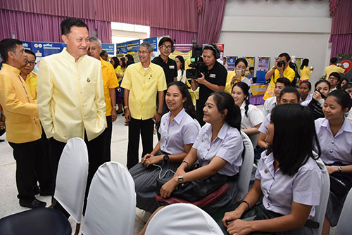 โดยปลัดกระทรวงแรงงาน กล่าวว่า กระทรวงแรงงาน โดยกรมการจัดหางาน เป็นหน่วยงานที่มีภารกิจเกี่ยวกับการส่งเสริมการมีงานทำ และคุ้มครองคนหางาน เพื่อให้ประชากรมีงานทำที่เหมาะสมกับความรู้ความสามารถและความถนัด ไม่ถูกหลอกลวง ตลอดจนได้รับสิทธิประโยชน์ที่เหมาะสมและเป็นธรรม ปัจจุบันการว่างงานและการขาดแคลนแรงงานในประเทศไทย เกิดจากความไม่สอดคล้องระหว่างกำลังแรงงานที่เข้าสู่ตลาดแรงงาน กับความต้องการของตลาดแรงงาน เนื่องจากผู้ที่กำลังศึกษาในสถาบันการศึกษาและผู้ว่างงานทั่วไป ยังไม่ทราบข้อมูลข่าวสารโลกอาชีพการศึกษา ความต้องการของตลาดแรงงาน และแนวทางการเข้าสู่อาชีพในปัจจุบันและอนาคต ตลอดจนการเตรียมตัวเพื่อการหางานทำ อาชีพเสริม จึงเป็นโอกาสที่ดีของผู้ที่เข้าร่วมกิจกรรมในวันนี้จะได้แสดงออกถึงความจงรักภักดีและรำลึกในพระมหากรุณาธิคุณอย่างหาที่สุดมิได้ ของสถาบันพระมหากษัตริย์ที่มีต่อพี่น้องประชาชนชาวไทยทุกคน อีกทั้งจักทำให้ประชาชนได้มีแนวทางเลือกประกอบอาชีพ มีอาชีพ มีงานทำ