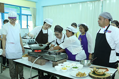 นายชัยชนะ เดชแพ ผู้อำนวยการสำนักงานพัฒนาฝีมือแรงงานนนทบุรี (สนพ.นนทบุรี) กล่าวว่า สาขาผู้ประกอบอาหาร ฝึกทำอาหารในเมนูที่เป็นที่นิยมของตลาด และตามร้านอาหารชื่อดัง ทั้งหมด 9 อย่าง อาทิ ปลาทับทิมอกระเบิด ซึ่งเซฟจะสอนทุกขั้นตอนตั้งแต่การเลือก ล้าง หั่น จนถึงทอด และ ตกแต่งให้สวยงามน่ารับประทาน ผ่านเคล็ดลับความอร่อยแบบสูตรเฉพาะของเซฟที่ถ่ายทอดให้ ส่วนกลุ่มคนที่รักงานฝีมือได้เลือกนำสิ่งศักดิ์สิทธิ์ ที่คนนิยมกราบไหว้ อาทิ องค์พระพิฆเนศ มาเพิ่มมูลค่าในสาขา เพิ่มมูลค่าจากเรซิ่น โดยฝึกตั้งแต่ขั้นตอนหล่อ ทาสี ไปจนถึงตกแต่งอย่างสวยงามตามจินตนาการ ของแต่ละคน ซึ่งนอกจากสร้างรายได้ จากการนำไปขายตามร้านสังฆภัณฑ์แล้ว ยังฝึกสมาธิและความอดทนด้วย ราคาองค์ละ 1,500 - 2,500 บาท ต้นทุนในการทำไม่เกิน 1,000 บาท อีกสาขาที่ดำเนินการฝึกคือ ขนมไทย ฝึกทำขนมไทยกว่า10 ชนิด ที่คนนิยมทาน เช่น เปียกปูนกะทิสด สำหรับผู้สูงอายุ ฝึกการแปรรูปสมุนไพรซึ่งเหมาะกับวัยและสุขภาพ อาทิ การแปรรูปสมุนไพรเป็นยาทาแก้ปวดตามร่างกาย ยาทากันยุงแมลงกัดต่อย และผลิตภัณฑ์ที่ใช้ในครัวเรือน