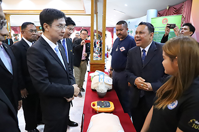 จากนั้น ที่ปรึกษารัฐมนตรีว่าการกระทรวงแรงงาน ได้เข้าเยี่ยมชมการอบรมตามโครงการรณรงค์สร้างการรับรู้มาตรการเชิงป้องกันด้านความปลอดภัย อาชีวอนามัย และสภาพแวดล้อมในการทำงาน เพื่อลดการประสบอันตรายของลูกจ้างในจังหวัดพระนครศรีอยุธยา (รุ่นที่ ๓) ณ โรงแรมอยุธยาริเวอร์วิว จังหวัดพระนครศรีอยุธยา
