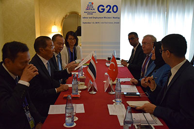 ในโอกาสนี้ ตุรกีได้ชื่นชมประเทศไทยในฐานะประธานอาเซียนที่ผลักดันการจัดตั้ง ASEAN Center for Active Ageing and Innovation (ACAI) เพื่อเป็นศูนย์วิจัยแลกเปลี่ยนเรียนรู้ด้านการสูงวัยอย่างมีศักยภาพและนวัตกรรม ทั้งนี้ รัฐมนตรีว่าการกระทรวงแรงงานได้แสดงความขอบคุณต่อการหารือทวิภาคีในครั้งนี้ และแสดงจุดยืนของประเทศไทยในการส่งเสริมสิทธิแรงงาน ทั้งการพัฒนาฝีมือแรงงานทุกช่วงวัย การจัดหางาน และการประกันสังคม และยกตัวอย่างการดำเนินการที่เป็นรูปธรรม คือ การจัดตั้งศูนย์ EEC ภายใต้แผนยุทธศาสตร์ไทยแลนด์ 4.0 เพื่อพัฒนาขีดความสามารถกำลังแรงงาน ในตอนท้ายตุรกีแสดงความขอบคุณสำหรับการประชุมหารือ และเน้นย้ำว่าประเทศไทยและตุรกีเป็นประเทศที่มีความสัมพันธ์อันดี จึงหวังเป็นอย่างยิ่งว่าจะมีโอกาสขยายความร่วมมือกับกระทรวงแรงงานในโอกาสต่อ ๆ ไป