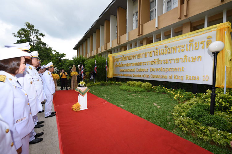 เมื่อวันที่ 19 กันยายน 2562 หม่อมราชวงศ์จัตุมงคล โสณกุล รัฐมนตรีว่าการกระทรวงแรงงาน เป็นประธานในพิธีเปิดโครงการพัฒนาแรงงานนานาชาติเฉลิมพระเกียรติเนื่องในโอกาสมหามงคลพระราชพิธีบรมราชาภิเษก ณ สถาบันพัฒนาฝีมือแรงงานนานาชาติ อ.เชียงแสน จ.เชียงราย โดยมี รองศาสตราจารย์ จักษ์ พันธ์ชูเพชร ที่ปรึกษารัฐมนตรีว่าการกระทรวงแรงงาน พร้อมด้วย ผู้บริหารระดับสูงกระทรวงแรงงาน เข้าร่วมในครั้งนี้ด้วย โดย รมว.แรงงาน กล่าวว่า พระบาทสมเด็จพระเจ้าอยู่หัวมีพระราชปณิธานแน่วแน่ที่จะทำให้ประเทศชาติมีความมั่นคงและประชาชนมีชีวิตความเป็นอยู่ที่ดีขึ้น ตลอดจนสืบสาน รักษาและต่อยอดโครงการอันเนื่องมาจากพระราชดำริ และแนวพระราชดำริของพระบาทสมเด็จพระมหาภูมิพลอดุลยเดชมหาราช บรมนาถบพิตรและสมเด็จพระบรมราชชนนีพันปีหลวง ในการบำบัดทุกข์บำรุงสุขให้ประชาชนและพัฒนาประเทศให้เจริญก้าวหน้า รวมทั้งได้น้อมนำ“ศาสตร์พระราชา”ตามหลัก“ปรัชญาของเศรษฐกิจพอเพียง”ไปขยายผลและเผยแพร่สู่สาธารณชนและเผยแพร่ภารกิจของกระทรวงแรงงาน ให้เป็นที่รู้จักและยอมรับในระดับนานาชาติ