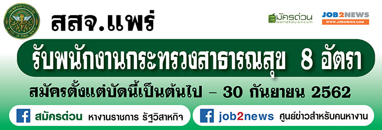 ประกาศสำนักงานสาธารณสุขจังหวัดแพร่ เรื่อง รับสมัครบุคคลเพื่อสรรหาและเลือกสรรเป็นพนักงานกระทรวงสาธารณสุขทั่วไป ประจำปีงบประมาณ 2563 โดยมีรายละเอียดดังต่อไปนี้
