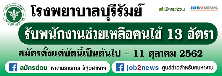 ประกาศโรงพยาบาลบุรีรัมย์ เรื่อง รับสมัครบุคคลเพื่อคัดเลือกเป็นลูกจ้างรายคาบ โดยมีรายละเอียดดังต่อไปนี้
