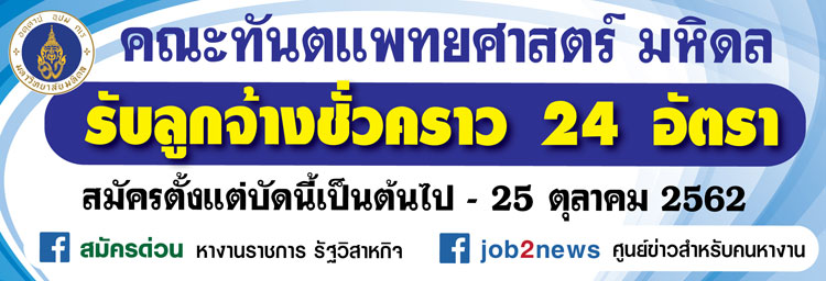 ประกาศคณะทันตแพทยศาสตร์ มหาวิทยาลัยมหิดล เรื่อง รับสมัครคัดเลือกบุคคลเพื่อบรรจุเป็นลูกจ้างชั่วคราวเงินรายได้ โดยมีรายละเอียดดังต่อไปนี้