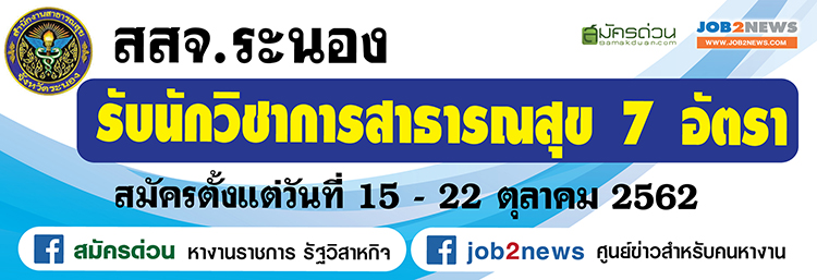 7. ตำแหน่ง นักวิชาการสาธารณสุข ปฏิบัติงานที่สำนักงานสาธารณสุขจังหวัดระนอง จำนวน 1 อัตรา
