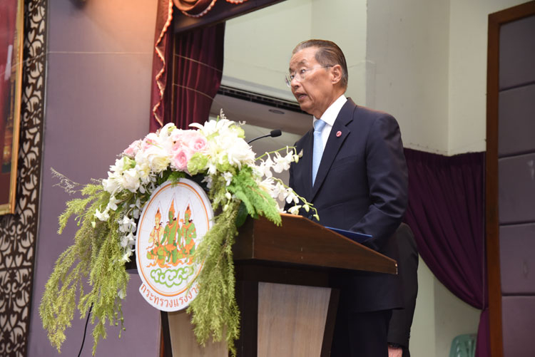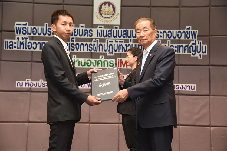 รัฐมนตรีว่าการกระทรวงแรงงาน มอบประกาศนียบัตรเงินสนับสนุนการประกอบอาชีพและให้โอวาทแก่ผู้สำเร็จการฝึกปฏิบัติงานเทคนิคในประเทศญี่ปุ่น นำความรู้และประสบการณ์ที่ได้รับนำมาใช้ให้เกิดประโยชน์อย่างคุ้มค่า