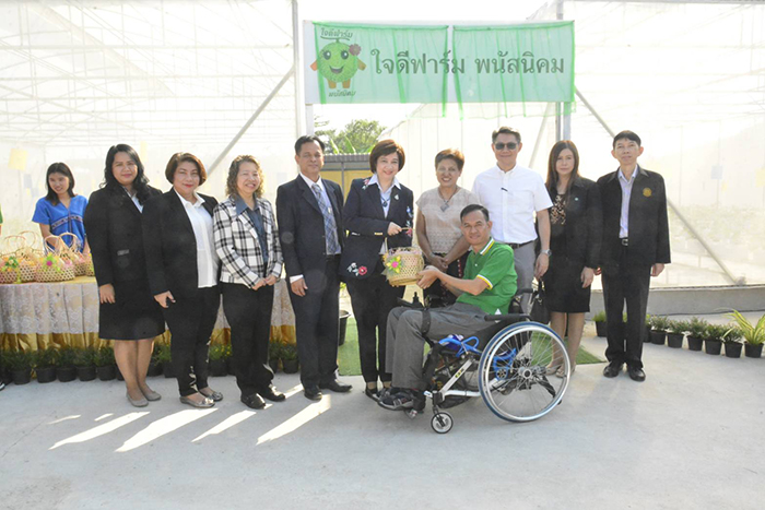สำหรับ “ใจดีฟาร์ม พนัสนิคม” เป็นหนึ่งในเครือข่ายของ ใจดีฟาร์ม จากเครือข่าย 3 แห่งคือ จ.ชัยนาท จ.นครสวรรค์ และจ.ชลบุรี มีการจัดตั้งกลุ่มอาชีพและใช้สิทธิการจ้างงานคนพิการ ตามมาตรา 35 เพื่อทำฟาร์มเมล่อน โดยกลุ่มฯ มีสมาชิก 13 คน ประกอบด้วยคนพิการและผู้ดูแลคนพิการ พื้นที่ที่ก่อสร้างโรงเรือนปลูกเมล่อน จำนวน 2 โรง และอาคารที่ทำการกลุ่ม ได้มีการทำทางลาดเพื่อความสะดวกในการทำงานของคนพิการ และสร้างห้องน้ำคนพิการ ด้านการพัฒนาศักยภาพคนพิการในด้านการผลิต กลุ่มมีการส่งสมาชิกไปศึกษาดูงานจากใจดีฟาร์มหันคา จ.ชัยนาท รวมทั้งมีผู้เชี่ยวชาญด้านการปลูกเมล่อนเข้ามาเป็นที่ปรึกษาและฝึกการเพาะปลูกเมล่อนให้กับสมาชิก ด้านการบริหารจัดการกลุ่ม การดำเนินงานตามมาตรา 35 เป็นการนำเอาสิทธิคนพิการที่ได้รับการจ้างงานมารวมกัน ซึ่งเป็นการลงทุนร่วมกันของคนพิการในการทำธุรกิจการเกษตร เมื่อกลุ่มมีรายได้จากการจำหน่ายผลผลิต รายได้ที่ได้รับจะมีการคิดคำนวณต้นทุนและค่าใช้จ่ายในการผลิต เงินในส่วนของทุนจะเก็บไว้เพื่อการลงทุนต่อไป ในส่วนที่เป็นกำไรจะนำไปแบ่งปันเป็นเงินปันผลให้กับสมาชิกเท่าๆกัน สำหรับคนพิการที่มาทำงานในฟาร์มนอกจากเงินปันผลที่ได้รับตามสิทธิแล้วยังจะได้รับค่าตอบแทนจากการทำงานด้วย ส่วนการดำเนินการส่งเสริมอาชีพแบบกลุ่มตามมาตรา 35 นั้น ได้ส่งเสริมให้คนพิการเรียนรู้ พัฒนาตนเอง สร้างอาชีพและสร้างธุรกิจได้ในระยะยาวแม้จะไม่ได้รับการสนับสนุนตามาตรา 35 แล้ว ก็จะยังคงสามารถดำเนินการต่อได้ อย่างยั่งยืน เพื่อช่วยให้คนพิการลดภาระของครอบครัวและสังคม สามารถพึ่งพาตนเองได้ มีความภาคภูมิใจในตนเอง และสามารถดำรงชีวิตอยู่ในสังคมได้อย่างมีศักดิ์ศรี