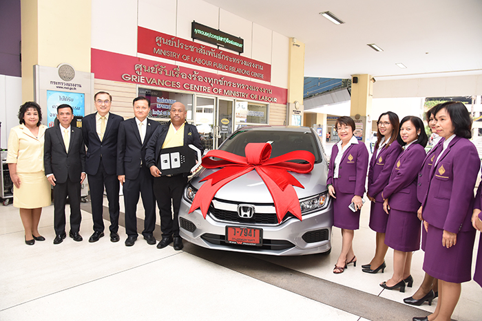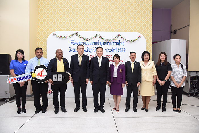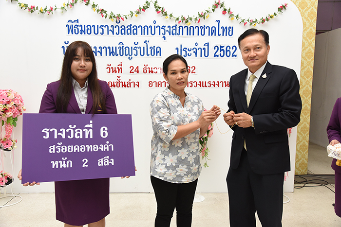ปลัดกระทรวงแรงงาน มอบรางวัลแก่ผู้โชคดีจากการจำหน่ายสลากบำรุงกาชาดไทย “บัตรแรงงานเชิญรับโชค”ประจำปี 2562 พร้อมนำรายได้ทูลเกล้าฯ ถวายสมเด็จพระเทพรัตนราชสุดาฯ สยามบรมราชกุมารี องค์อุปนายิกาผู้อำนวยการสภากาชาดไทย