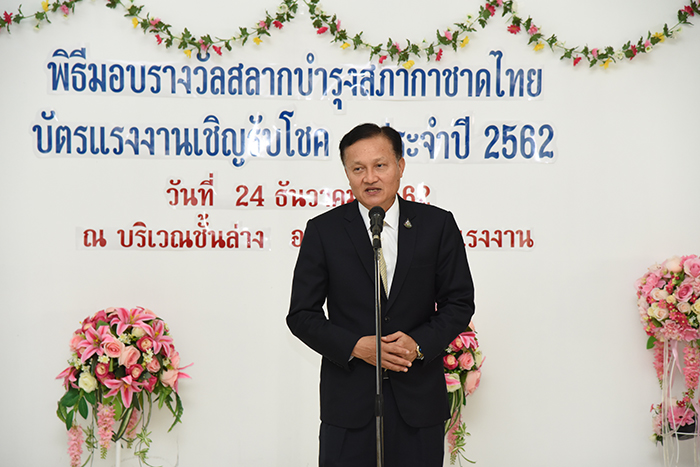 วันนี้ (24 ธ.ค.62) เวลา 10.00 น. นายสุทธิ สุโกศล ปลัดกระทรวงแรงงาน เป็นประธานในพิธีมอบรางวัลสลากบำรุงกาชาดไทย “บัตรแรงงานเชิญรับโชค” ประจำปี 2562 ณ บริเวณชั้นล่าง อาคารกระทรวงแรงงาน โดยมี นายนิยม สองแก้ว ผู้ช่วยปลัดกระทรวงแรงงาน เข้าร่วมในครั้งนี้ด้วย โดยปลัดกระทรวงแรงงานกล่าวว่า “กระทรวงแรงงานมีการจัดหารายได้เพื่อนำเข้าสมาคมแม่บ้านกระทรวงแรงงาน โดยในทุกปีจะมีการจัดงานกาชาด ซึ่งในปีนี้ได้จัดงานเมื่อวันที่ 15 - 24 พฤศจิกายน 2562 ซึ่งกระทรวงแรงงานได้จัดจำหน่ายสลากกาชาดของสมาคมแม่บ้านกระทรวงแรงงาน ซึ่งปีนี้มีรายได้จากการจำหน่ายบัตรรวมทั้งสิ้น 1,776,710 บาท เพื่อนำรายได้ทูลเกล้าฯ ถวายสมเด็จพระเทพรัตนราชสุดาฯ สยามบรมราชกุมารี องค์อุปนายิกาผู้อำนวยการสภากาชาดไทย และนำมาใช้จ่ายในกิจกรรมที่เป็นประโยชน์ในเรื่องของสาธารณกุศล ส่วนหนึ่งจัดเป็นทุนการศึกษาให้กับบุตรของข้าราชการและเจ้าหน้าที่กระทรวงแรงงานที่มีรายได้น้อย