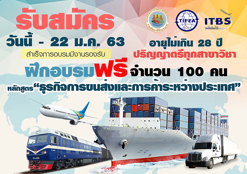 กระทรวงแรงงาน โดยกรมพัฒนาฝีมือแรงงาน เปิดรับสมัครอบรมหลักสูตร “ธุรกิจการขนส่งและการค้าระหว่างประเทศ” ฟรี เปิดรับสมัครตั้งแต่วันนี้จนถึง 22 ม.ค.63