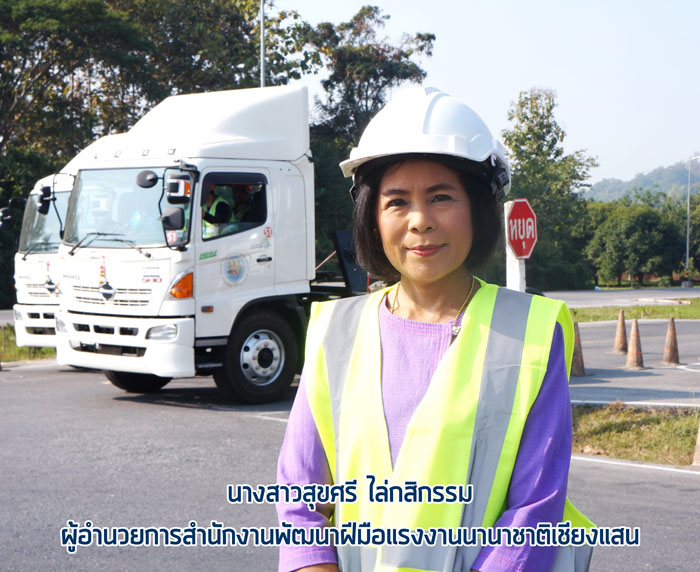 เมื่อวันที่ 10 มกราคม 2563 นางสาวสุขศรี ไล่กสิกรรม ผู้อำนวยการสถาบันพัฒนาฝีมือแรงงานนานาชาติเชียงแสน จังหวัดเชียงราย เปิดเผยว่า สถาบันพัฒนาฝีมือแรงงานนานาชาติดำเนินการจัดฝึกอบรมสาขา “เทคนิคการขับรถลากจูง” (Trailer driving techniques) ระหว่างวันที่ 6 มกราคม - 4 กุมภาพันธ์ 2563 รวมระยะเวลาการฝึกอบรมรวมทั้งสิ้น 210 ชั่วโมง ณ ศูนย์ฝึกอบรมความเป็นเลิศด้านโลจิสติกส์ สถาบันพัฒนาฝีมือแรงงานนานาชาติ อำเภอเชียงแสน จังหวัดเชียงราย โดยหลักสูตรดังกล่าวจัดขึ้นเพื่อมุ่งหวังที่จะพัฒนาพนักงานขับรถบรรทุกให้สามารถปฏิบัติงานได้อย่างมีประสิทธิภาพ ตลอดจนเสริมสร้างระเบียบวินัยและปลูกจิตสำนึกในการขับขี่รถบรรทุกขนาดใหญ่ให้ถูกต้องตามกฎจราจร และมีความปลอดภัยต่อผู้ร่วมใช้รถใช้ถนน มีทัศนคติที่ดีและปรับความคิดเชิงสร้างสรรค์ในการประกอบอาชีพพนักงานขับรถบรรทุกในสังคมโลกปัจจุบัน และเพื่อยกระดับอาชีพพนักงานขับรถบรรทุกไปสู่ความเป็นมืออาชีพ ซึ่งจะส่งผลให้พนักงานขับรถบรรทุกและครอบครัวมีคุณภาพชีวิตที่ดี