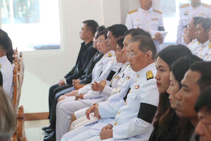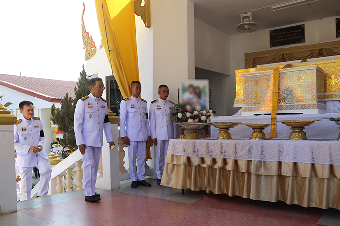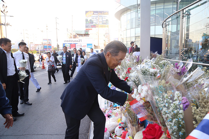 จากนั้น เวลา 15.10 น. เดินทางมาร่วมในพิธีพระราชทานเพลิงศพ ที่วัดสุทธิจินดาวรวิหาร อำเภอเมือง จังหวัดนครราชสีมา ซึ่ง พระบาทสมเด็จพระเจ้าอยู่หัวทรงพระกรุณาโปรดเกล้า โปรดกระหม่อมให้ พลเอกไพบูลย์ คุ้มฉายา เป็นผู้แทนพระองค์ไปในการพระราชทานเพลิงศพ นายสุริยะ ลิมป์รัชตามร นางปรัชญา นวลรักษา เด็กชายปรมะ ลิมป์รัชตามร ครอบครัว 3 พ่อแม่ลูก ซึ่งเป็นครอบครัวผู้ประกันตนที่เสียชีวิต โดยบรรยากาศเต็มไปด้วยความโศกเศร้า มีญาติและประชาชนที่ทราบข่าวร่วมเดินทางมาไว้อาลัยเป็นจำนวนมาก ต่อจากนั้น หม่อมราชวงศ์จัตุมงคล โสณกุล พร้อมข้าราชการระดับสูง ของกระทรวงแรงงาน และเจ้าหน้าที่ได้เดินทางไปยังบริเวณหน้าศูนย์การค้าเทอร์มินอล 21 เพื่อวางดอกไม้และยืนไว้อาลัยให้กับผู้เสียชีวิตในเหตุการณ์กราดยิง