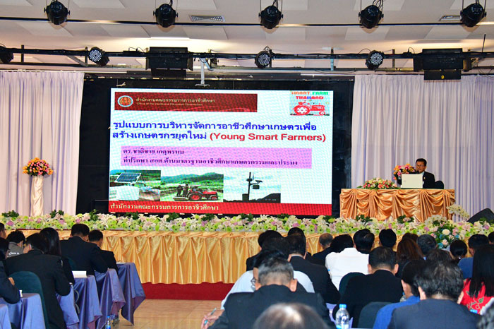 ดร.ชาติชาย เกตุพรหม ที่ปรึกษาด้านมาตรฐานอาชีวศึกษาเกษตรกรรมและประมง ผู้อำนวยการวิทยาลัยเกษตรและเทคโนโลยีร้อยเอ็ด กล่าวว่า การประชุมสัมมนาเชิงปฏิบัติการ "จัดทัพสู่ Digital Farming" เพื่อจัดทำแผนปฏิบัติการ การสร้างเครือข่ายความร่วมมือไปสู่เป้าหมายร่วมกันกับ Stakeholders และเพื่อเตรียมความพร้อมก้าวสู่ Digital Farming การประชุมสัมมนาครั้งนี้ มีการบรรยายพิเศษเรื่อง "การปฏิรูปอาชีวเกษตรสู่ Digital Farming และเกษตรกรรุ่นใหม่หัวใจไอที การแบ่งกลุ่มย่อย และการนำเสนองานกลุ่มเพื่อจัดทำแผนปฏิบัติการสู่เป้าหมายร่วมกันกับภาคีเครือข่ายและผู้เกี่ยวข้อง โดยมีผู้บริหารสถาบันการอาชีวศึกษาเกษตรภาคเหนือ สถาบันการอาชีวศึกษาเกษตรภาคตะวันออกเฉียงเหนือ สถาบันการอาชีวศึกษาเกษตรภาคกลาง และสถาบันการอาชีวศึกษาเกษตรภาคใต้ ผู้อำนวยการวิทยาลัยเกษตรและวิทยาลัยประมง ทั้ง 47 แห่ง รองผู้อำนวยการฝ่ายแผนงานและความร่วมมือ ครูหัวหน้าฟาร์ม ประธานกรรมการวิทยาลัย ตัวแทนศิษย์เก่า ตัวแทนสถานประกอบการ และ Smart Farming รวมทั้งสิ้น 400 คน
