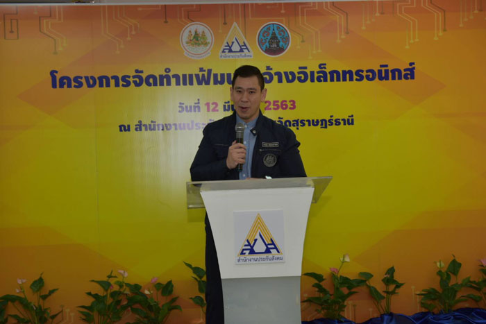 นายทศพล กฤตวงศ์วิมาน เลขาธิการสำนักงานประกันสังคม กล่าวว่า สืบเนื่องจากหม่อมราชวงศ์จัตุมงคล โสณกุล รัฐมนตรีว่าการกระทรวงแรงงาน ได้มอบนโยบายเร่งด่วนในปี 2563 ให้เร่งรัด "ปฏิรูปกำลังแรงงาน" หรือ workforce Transformation" และนโยบายสำคัญในการยกระดับการให้บริการทางอิเล็กทรอนิกส์ ไปสู่รัฐบาลดิจิทัล เพื่อประชาชนได้เข้าถึงด้วยความสะดวก รวดเร็ว โปร่งใส หลากหลายช่องทาง และเป็นไปตามหลักธรรมาภิบาล สำนักงานประกันสังคมจึงได้นำแนวนโยบายดังกล่าวกำหนดแนวทางในการปรับกระบวนงานการในการให้บริการ นายจ้าง ลูกจ้างผู้ประกันตน ให้หลากหลายการจัดทำแฟ้มนายจ้างอิเล็กทรอนิกส์ เป็นโครงการหนึ่งที่สำนักงานประกันสังคม มุ่งหวังจะปฏิรูประบบ และวิธีการปฏิบัติราชการโดยใช้เอกสารหลักฐานที่เป็นกระดาษ สู่ความทันสมัยบนข้อมูล และหลักฐานชิงประจักษ์ในรูปแบบอิเล็กทรอนิกส์ โดยนำนวัตกรรมเทคโนโลยีมาใช้ในการบริหารจัดการข้อมูลที่เรียกว่า "แฟ้มอิเล็กทรอนิกส์" ซึ่งปัจจุบันข้อมูลนายจ้าง ลูกจ้าง ผู้ประกันตนที่อยู่ในแฟ้มนายจ้างทั่วประเทศ 918,502 แฟ้ม สำหรับแฟ้มนายจ้างในจังหวัดสุราษฎร์ธานี มีทั้งสิ้น 13,996 แฟ้ม มีนายจ้างทั้งสิ้น 7,705 ราย มีลูกจ้างหรือผู้ประกันตนจำนวนทั้งสิ้น 124,017 ราย ข้อมูลดังกล่าวจะถูกจัดเก็บในรูปแบบอิเล็กทรอนิกส์ โดยสำนักงานประกันสังคม กระทรวงแรงงาน จะนำมาใช้เพื่อให้บริการนายจ้างลูกจ้าง ผู้ประกันตน และประชาชน ได้ด้วยความสะดวก รวดเร็ว ฉับไว สมบูรณ์ ครอบคลุมทุกรายละเอียด ซึ่งเป็นการตอบสนองยุทธศาสตร์ชาติ 20 ปี ในยุทธศาสตร์ที่ 6 การปรับสมดุลและพัฒนาระบบบริหารจัดการภาครัฐ