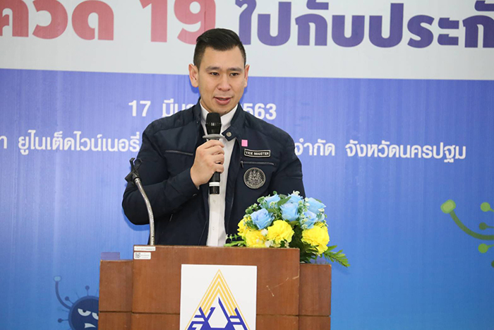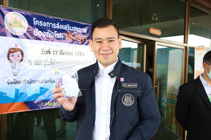 ดร.ดวงฤทธิ์ เบ็ญจาธิกุล ชัยรุ่งเรือง ผู้ช่วยรัฐมนตรีประจำกระทรวงแรงงาน กล่าวกับสื่อมวลชนว่า หม่อมราชวงศ์จัตุมงคล โสณกุล รัฐมนตรีว่าการกระทรวงแรงงาน ได้มีความห่วงใย ลูกจ้าง ผู้ประกันตน ที่อยู่ในระบบประกันสังคม จากสถานการณ์การแพร่ระบาดอย่างรวดเร็วและรุนแรงของโรคติดต่อเชื้อไวรัส COVID-19 ที่เกิดขึ้นในขณะนี้ จึงมีนโยบายให้หน่วยงานในสังกัดกระทรวงแรงงาน ให้ความสำคัญ ต่อสุขภาพอนามัยและความปลอดภัยของ ลูกจ้าง ผู้ประกันตน ขณะเดียวกันได้สั่งการให้สำนักงานประกันสังคมทั่วประเทศ ให้ความรู้ป้องกันโรคติดต่อเชื้อไวรัส COVID-19 และคำแนะนำเรื่องสิทธิประโยชน์แก่ลูกจ้าง ผู้ประกันตน อย่างไรก็ดีการจัดกิจกรรมในวันนี้ มีวัตถุประสงค์เพื่อขับเคลื่อนนโยบายการบริการส่งเสริมสุขภาพ ที่มีการพัฒนารูปแบบกิจกรรมเกี่ยวกับการดูแลสุขภาพตนเองและการลดความเสี่ยง โดยจะกระตุ้นให้ผู้ประกันตนหันมาสนใจสุขภาพมากยิ่งขึ้น โดยได้รับความร่วมมือจาก บริษัท ยูไนเต็ด ไวน์เนอรี่ แอนด์ ดิสทิลเลอรี่ จำกัด จัดกิจกรรมส่งเสริมสุขภาพป้องกันโรคในสถานประกอบการ พร้อมให้ความรู้เรื่อง “รู้จริงโรคโควิด 19 ไปกับประกันสังคม” ซึ่งภายในงานจัดให้มีการคัดกรองและแจกหน้ากากอนามัยให้กับผู้เข้าอบรมจำนวน 50 คน และมีการบรรยายให้ความรู้เรื่อง “การส่งเสริมและป้องกันโรคอันเนื่องจาก การทำงาน” โดยแพทย์จากโรงพยาบาลนครชัยศรี และการให้ความรู้เรื่องเกี่ยวกับโรค COVID-19 โดยแพทย์หญิงนิธยาพร ลิมปะพันธุ์ ผู้อำนวยการศูนย์ฟื้นฟูสมรรถภาพคนงานภาค 1 จังหวัดปทุมธานีอีกด้วย