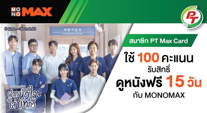“MONOMAX” (โมโนแมกซ์) ผู้ให้บริการดูหนังออนไลน์ ในเครือโมโน กรุ๊ป ส่งความบันเทิงให้กับคุณลูกค้าเจ้าของ บัตร PT Max Card ได้ดูหนังฟรี! ถึงบ้าน เพียงใช้ 100 คะแนนจากบัตร PT Max Card ผ่านแอปพลิเคชั่นแมกซ์รีวอร์ด รับทันทีสิทธิ์ดูหนังออนไลน์แบบถูกลิขสิทธิ์ MONOMAX (โมโนแมกซ์) ฟรีทันที 15 วัน สนใจร่วมกิจกรรมได้ตั้งแต่วันนี้ ถึงวันที่ 30 กันยายนนี้ ติดตามรายละเอียดเพิ่มเติม โทร PT Call Center 1614 ทุกวัน เวลา 08.00-20.00 น. หรือติดตามที่เฟสบุ๊คแฟนเพจ MONOMAX