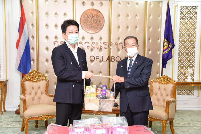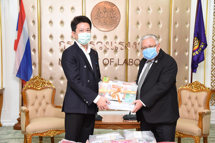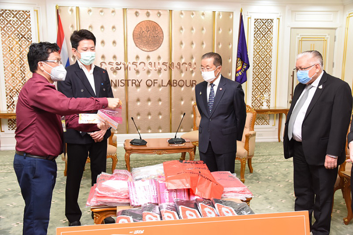 เมื่อวันที่ 16 เมษายน 2563 เวลา 09.30 น. หม่อมราชวงศ์จัตุมงคล โสณกุล รัฐมนตรีว่าการกระทรวงแรงงาน เป็นประธานรับมอบผลิตภัณฑ์ถุงซิปพลาสติก จำนวน 102,000 ชิ้น จากนายทวี จุลศักดิ์ศรีสกุล กรรมการบริษัท คิงส์แพ็ค อินดัสเตรียล จำกัด ผู้จัดจำหน่ายผลิตภัณฑ์พลาสติก ภายใต้แบรนด์ “HERO” ณ ห้องจัตุมงคล ชั้น 6 อาคารกระทรวงแรงงาน โดยมี ผู้บริหารระดับสูงกระทรวงแรงงาน เข้าร่วมในครั้งนี้ด้วย เพื่อใช้ประโยชน์ในราชการให้แก่ข้าราชการและเจ้าหน้าที่ หน่วยงานในสังกัดกระทรวงแรงงานและอาสาสมัครแรงงาน สามารถใช้บรรจุสิ่งของเอนกประสงค์ได้ทั้งเงิน เจลแอลกอฮอล์ขนาดพกพา และหน้ากากอนามัย เพื่อป้องกันการแพร่ระบาดของไวรัส COVID -19 ได้