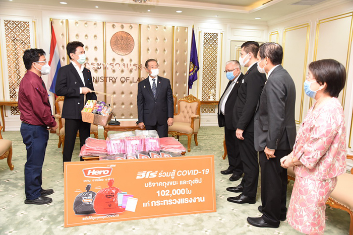 กระทรวงแรงงาน รับมอบผลิตภัณฑ์ถุงซิปพลาสติกภายใต้แบรนด์ฮีโร่ จำนวน 102,000 ชิ้น เพื่อใช้ประโยชน์ในราชการให้แก่ข้าราชการ เจ้าหน้าที่ หน่วยงานในสังกัดกระทรวงแรงงานและอาสาสมัครแรงงาน ใช้บรรจุสิ่งของเอนกประสงค์เพื่อป้องกันการแพร่ระบาดของไวรัส COVID -19 ได้