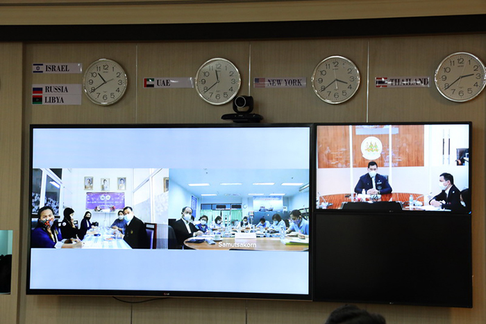 เมื่อวันที่ 17 เมษายน 2563 เวลา 14.30 น. ดร.ดวงฤทธิ์ เบ็ญจาธิกุล ชัยรุ่งเรือง ผู้ช่วยรัฐมนตรีประจำกระทรวงแรงงาน เป็นประธานการประชุมเพื่อหารือร่วมกับ นายแพทย์ธเรศ กรัษนัยรวิวงค์ อธิบดีกรมสนับสนุนบริการสุขภาพ กระทรวงสาธารณสุข นายแพทย์พิชิต ศิริวรรณ รองผู้อำนวยการสำนักงานบรรเทาทุกข์และประชานามัยพิทักษ์ สภากาชาดไทย พร้อมด้วย นางเธียรรัตน์ นะวะมะวัฒน์ รองปลัดกระทรวงแรงงาน นายเชิดศักดิ์ วิสุทธิกุล ผู้ตรวจราชการกรม กรมการจัดหางาน เข้าร่วมในครั้งนี้ด้วย โดยประชุมทางไกลผ่านระบบ Video Conference ร่วมกับ นายกเหล่ากาชาดจังหวัด แรงงานจังหวัด และจัดหางานจังหวัดปทุมธานีและสมุทรสาคร เพื่อหารือในประเด็นความร่วมมือในการเข้าไปให้ความรู้เกี่ยวกับการป้องกันการแพร่ระบาดของเชื้อไวรัสโคโรน่า 2019 (COVID - 19) แก่แรงงานต่างด้าวในพื้นที่