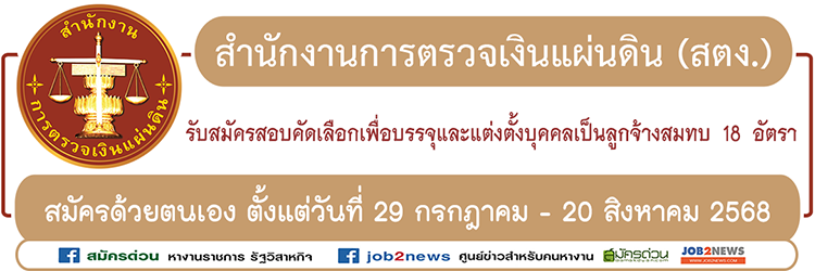 ประกาศสํานักงานการตรวจเงินแผ่นดิน เรื่อง รับสมัครสอบคัดเลือกเพื่อบรรจุและแต่งตั้งบุคคลเป็นลูกจ้างสมทบ ตําแหน่งพนักงานสมทบตรวจเงินแผ่นดิน ชั้น 3 (ด้านบัญชี) และพนักงานสมทบตรวจเงินแผ่นดิน ชั้น 5 ในสํานักงานการตรวจเงินแผ่นดิน (ส่วนกลาง) โดยมีรายละเอียดดังต่อไปนี้