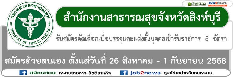 ประกาศจังหวัดสิงห์บุรี เรื่อง รัรับสมัครคัดเลือกเพื่อบรรจุและแต่งตั้งบุคคลเข้ารับราชการ สังกัดสำนักงานสาธารณสุขจังหวัดสิงห์บุรี โดยมีรายละเอียดดังต่อไปนี้