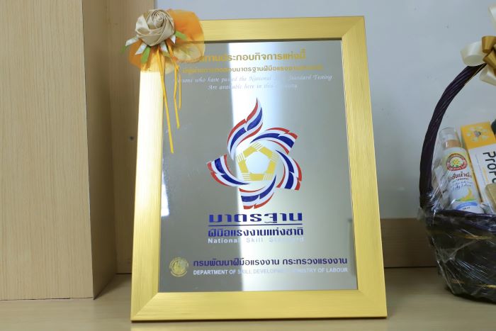 นอกจากนี้ ยังได้มอบเครื่องหมายมาตรฐานฝีมือแรงงานแห่งชาติ ให้แก่บริษัท ผาทอง 24 จำกัด ณ ตำบลปากแพรก อำเภอทุ่งสง ซึ่งเป็นสถานประกอบกิจการที่ดำเนินธุรกิจคอนกรีตผสมเสร็จ และวัสดุอุปกรณ์ที่เป็นผลิตภัณฑ์คอนกรีตทุกประเภท มีพนักงานทั้งหมด จำนวน 245 คน และผ่านการทดสอบมาตรฐานฝีมือแรงงานแห่งชาติ สาขาพนักงานควบคุมเครื่องจักรรถยกใช้เครื่องยนต์ ระดับ 1 จำนวน 19 คน และสาขาช่างไฟฟ้าภายในอาคาร ระดับ 1 จำนวน 6 คน รวมทั้งสิ้น 26 คน ซึ่งมีคุณสมบัติครบถ้วน