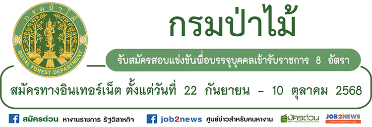 ประกาศกรมป่าไม้ เรื่อง รับสมัครสอบแข่งขันพื่อบรรจุบุคคลเข้ารับราชการในตำแหน่งต่าง ๆ ของกรมป่า โดยมีรายละเอียดดังต่อไปนี้