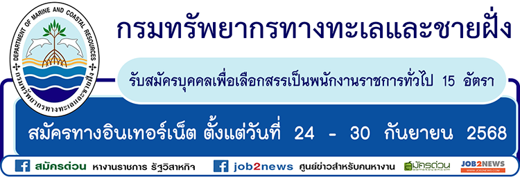 ประกาศกรมทรัพยากรทางทะเลและชายฝั่ง เรื่อง รับสมัครบุคคลเพื่อเลือกสรรเป็นพนักงานราชการทั่วไป สังกัดกรมทรัพยากรทางทะเลและชายฝั่ง ครั้งที่ 5/2568 โดยมีรายละเอียดดังต่อไปนี้