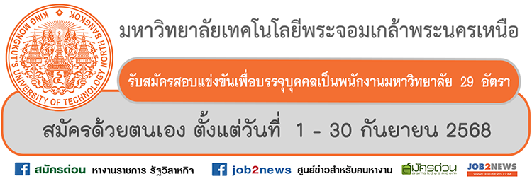ประกาศ ก.บ.ม. มหาวิทยาลัยเทคโนโลยีพระจอมเกล้าพระนครเหนือ เรื่อง รับสมัครสอบแข่งขันเพื่อบรรจุบุคคลเป็นพนักงาน