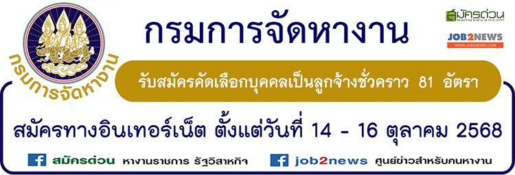 ประกาศกรมการจัดหางาน เรื่อง รับสมัครคัดเลือกบุคคลเป็นลูกจ้างชั่วคราว โดยมีรายละเอียดดังต่อไปนี้