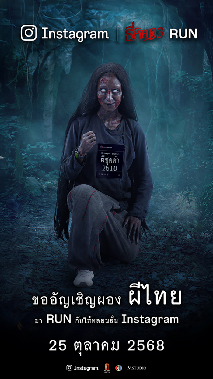 นรุตม์ เจียรสนอง รองประธานเจ้าหน้าที่บริหารฝ่ายการตลาด บริษัท เมเจอร์ ซีนีเพล็กซ์ กรุ้ป จำกัด (มหาชน) ผนึกกำลัง ภารดี สินธวณรงค์ Head of Marketing, Thailand & Philippines, Meta และ สุรเชษฐ์ อัศวเรืองอนันต์ ประธานเจ้าหน้าที่บริหาร M Studio จัดกิจกรรม “Instagram | ธี่หยด3 RUN” เปิดโอกาสให้แฟนหนังและสายคอนเทนต์สมัครเข้าร่วมวิ่งฟรี!! พบคาแร็กเตอร์ผีจากภาพยนตร์ “ธี่หยด” ตัวจริงเสียงจริงที่จะมาสร้างประสบการณ์สุดสยองและสนุกในแบบอินเทอร์แอ็กทีฟ เปิดรับสมัครนักวิ่งผีไทยอายุตั้งแต่ 15 ปีขึ้นไป เพียงร่วมสนุกใช้ Instagram Add Yours Template โดยสมัครผ่านหน้า Bio ของ @thai.run ตั้งแต่วันที่ 19 ตุลาคม 2568 เวลา 10.00 น. เป็นต้นไป รับจำนวนจำกัดเพียง 500 คนเท่านั้น