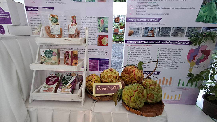 นอกจากนี้ มหาวิทยาลัยยังได้รับเกียรติให้เข้าร่วมแสดงผลงานในนิทรรศการ ภายใต้แนวคิด “อนุรักษ์ภูมิปัญญา สืบสานสีธรรมชาติ สร้างเศรษฐกิจชุมชน” โดยนำเสนอผลงานของคณะศิลปกรรมและสถาปัตยกรรมศาสตร์ มทร.ล้านนา ที่บูรณาการร่วมกับศูนย์ส่งเสริมการเรียนรู้ระดับอำเภอพร้าว และจังหวัดเชียงใหม่ ถ่ายทอดองค์ความรู้ด้านสีธรรมชาติและงานสิ่งทอจาก ชุมชนบ้านขอนม่วง อำเภอพร้าว จังหวัดเชียงใหม่ ซึ่งเป็นแหล่งภูมิปัญญาการย้อมสีจากธรรมชาติที่สืบทอดมาอย่างยาวนาน