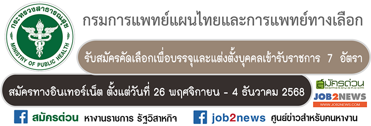 ประกาศกรมการแพทย์แผนไทยและการแพทย์ทางเลือก เรื่อง รับสมัครคัดเลือกเพื่อบรรจุและแต่งตั้งบุคคลเข้ารับราชการ
