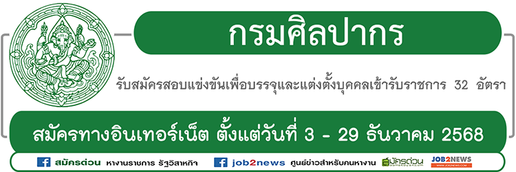ประกาศกรมศิลปากร เรื่อง รับสมัครสอบแข่งขันเพื่อบรรจุและแต่งตั้งบุคคลเข้ารับราชการ สังกัดกรมศิลปากร ครั้งที่ 1/2569 โดยมีรายละเอียดดังต่อไปนี้