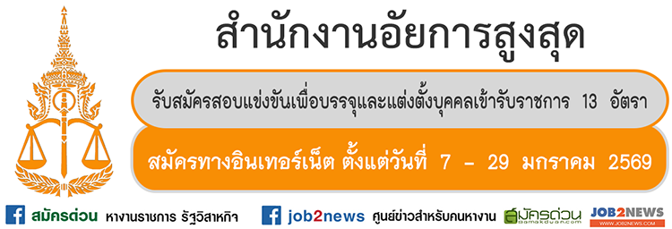 ผู้ประสงค์จะสมัครสอบ สมัครได้ทางอินเทอร์เน็ต ตั้งแต่วันที่ 7 มกราคม 2569 ถึงวันที่ 29 มกราคม 2569 ตลอด 24 ชั่วโมง ไม่เว้นวันหยุดราชการ ที่เว็บไซต์ https://ago.thaijobjob.com/ อ่านรายละเอียดที่ไฟล์ประกาศรับสมัคร