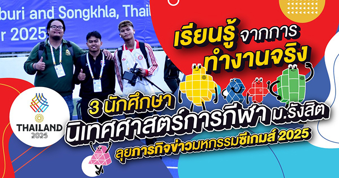 3 นักศึกษาสาขาวิชานิเทศศาสตร์การกีฬา วิทยาลัยนิเทศศาสตร์ ม.รังสิต เรียนรู้จากการทำงานจริง เสริมทักษะวิชาชีพ และเปิดมุมมองการสื่อสารกีฬาในระดับนานาชาติ ร่วมปฏิบัติงานด้านข่าวมหกรรมกีฬาซีเกมส์ 2025