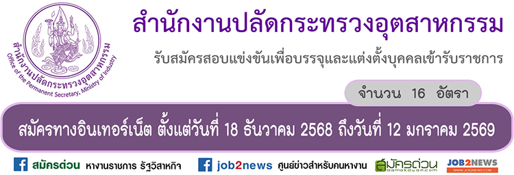 ผู้ประสงค์จะสมัครสอบ สมัครได้ทางอินเทอร์เน็ต ตั้งแต่วันที่ 18 ธันวาคม 2568 ถึงวันที่ 12 มกราคม 2569 ตลอด 24 ชั่วโมง ไม่เว้นวันหยุดราชการ ที่เว็บไซต์ https://industry.thaijobjob.com/ อ่านรายละเอียดที่ไฟล์ประกาศรับสมัคร