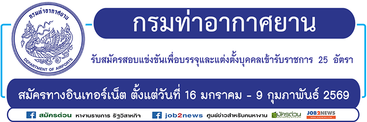 ประกาศกรมท่าอากาศยาน เรื่อง รับสมัครสอบแข่งขันเพื่อบรรจุและแต่งตั้งบุคคลเข้ารับราชการในตำแหน่งต่าง ๆ โดยมีราย