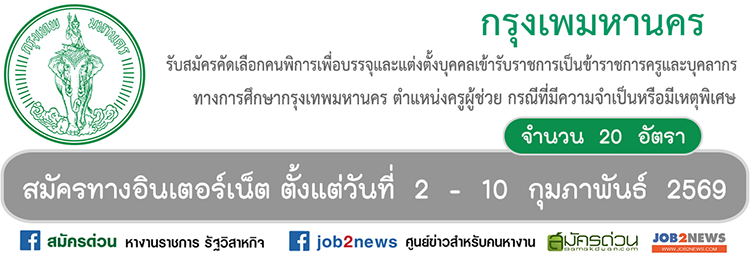 ราชการเป็นข้าราชการครูและบุคลากร ทางการศึกษากรุงเทพมหานคร ตำแหน่งครูผู้ช่วย กรณีที่มีความจำเป็นหรือมีเหตุพิเศษ ครั้งที่ 1/2569 โดยมีรายละเอียดดังต่อไปนี้