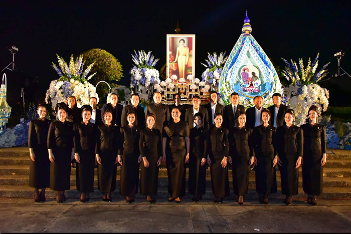ซึ่งออกแบบโดย ผศ.วิจิตร สนหอม หัวหน้าสาขาวิชาคหกรรมศาสตร์ คณะเทคโนโลยีคหกรรมศาสตร์ สื่อความหมายถึงแสงแห่งปัญญา ดุจดอกบัวอันบริสุทธิ์ เพื่อเฉลิมพระเกียรติและน้อมสำนึกในพระมหากรุณาธิคุณขององค์อัคราภิรักษศิลปิน ผู้ทรงเป็นมิ่งขวัญและที่ยึดเหนี่ยวจิตใจของเหล่าพสกนิกรอย่างหาที่สุดมิได้ ปิดท้ายการแสดงด้วยศิลปะชั้นสูง การแสดงโขน เรื่องรามเกียรติ์ ชุด“คารวาลัยพระมิ่งมาตา คู่บุญญาบารมีบรมจักรีองค์ภูมิพล” โดยคณะศิลปกรรมศาสตร์ ภายใต้การอำนวยการของ ผศ.ดร.มาโนช บุญทองเล็ก คณบดีคณะศิลปกรรมศาสตร์ ซึ่งการจัดงานครั้งนี้ เป็นการน้อมรำลึกถึงพระมหากรุณาธิคุณอันหาที่สุดมิได้ โดย “ราชมงคลธัญบุรี” ได้รวบรวมดวงใจและสายใยแห่งความจงรักภักดี หลอมรวมเป็นหนึ่งเดียว เพื่อบำเพ็ญกุศล 100 วัน อุทิศถวายแด่ สมเด็จพระนางเจ้าสิริกิติ์ พระบรมราชินีนาถ พระบรมราชชนนีพันปีหลวง ด้วยความสำนึกในพระมหากรุณาธิคุณอย่างหาที่สุดมิได้