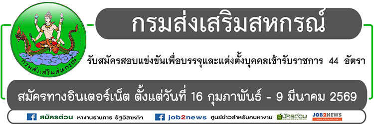 ประกาศกรมส่งเสริมสหกรณ์ เรื่อง รับสมัครสอบแข่งขันเพื่อบรรจุและแต่งตั้งบุคคลเข้ารับราชการในกรมส่งเสริมสหกรณ์ โดยมี